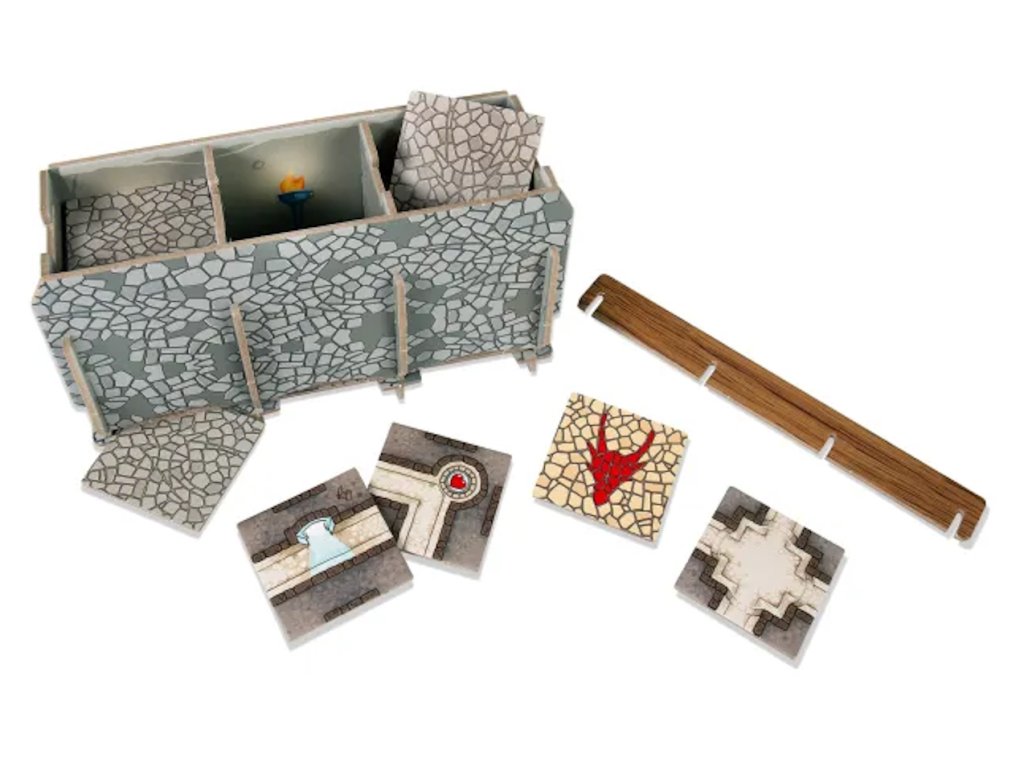Druhé vydání hry Karak má novou čtvercovou krabici, plastový insert a kartonovou věž na dílky.