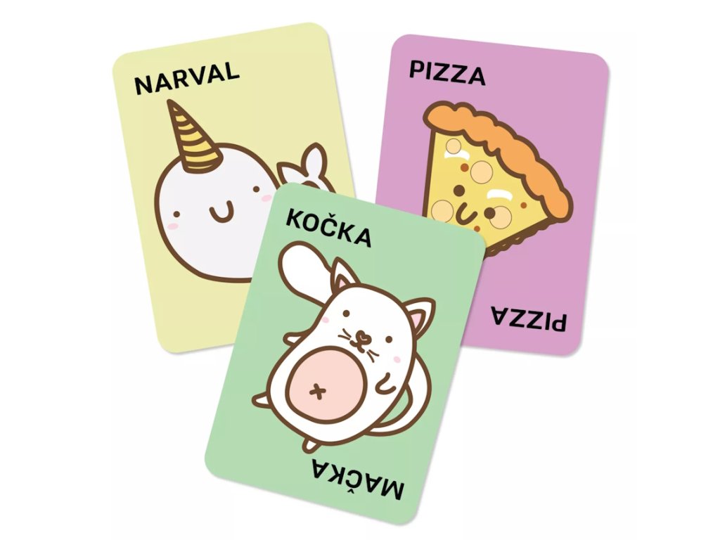 Bláznivá postřehová hra, která vás nenechá vydechnout! Stačí opakovat pět jednoduchých slov – ale pozor! Jakmile se otočená karta shoduje s vysloveným slovem, musíte ji bleskově zaplácnout dřív než ostatní.