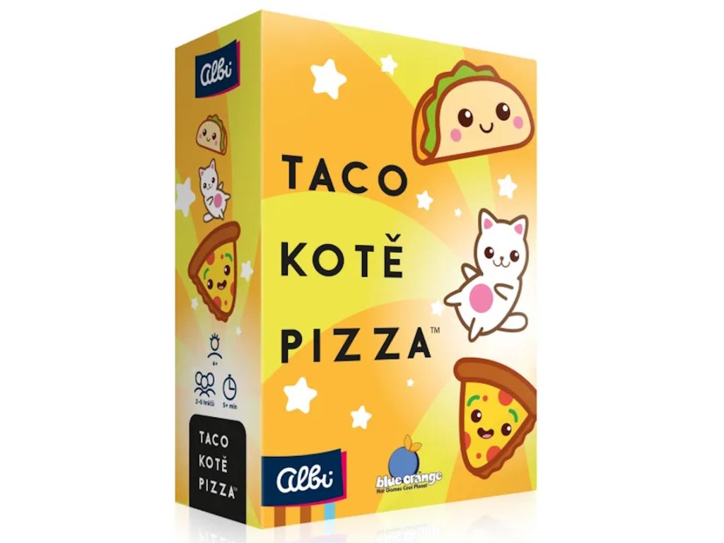 Taco, kotě, pizza je roztomilá postřehová hra, která potěší malé i velké hráče. Díky jednoduchým pravidlům si ji užijí i mladší děti, ale zároveň dokáže pěkně potrápit i zkušené fanoušky původní hry Taco, kočka, koza, sýr, pizza.
