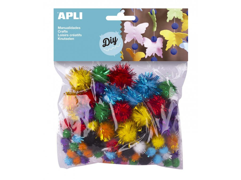 Apli | Pom pom se třpytkami barevný mix 78 ks