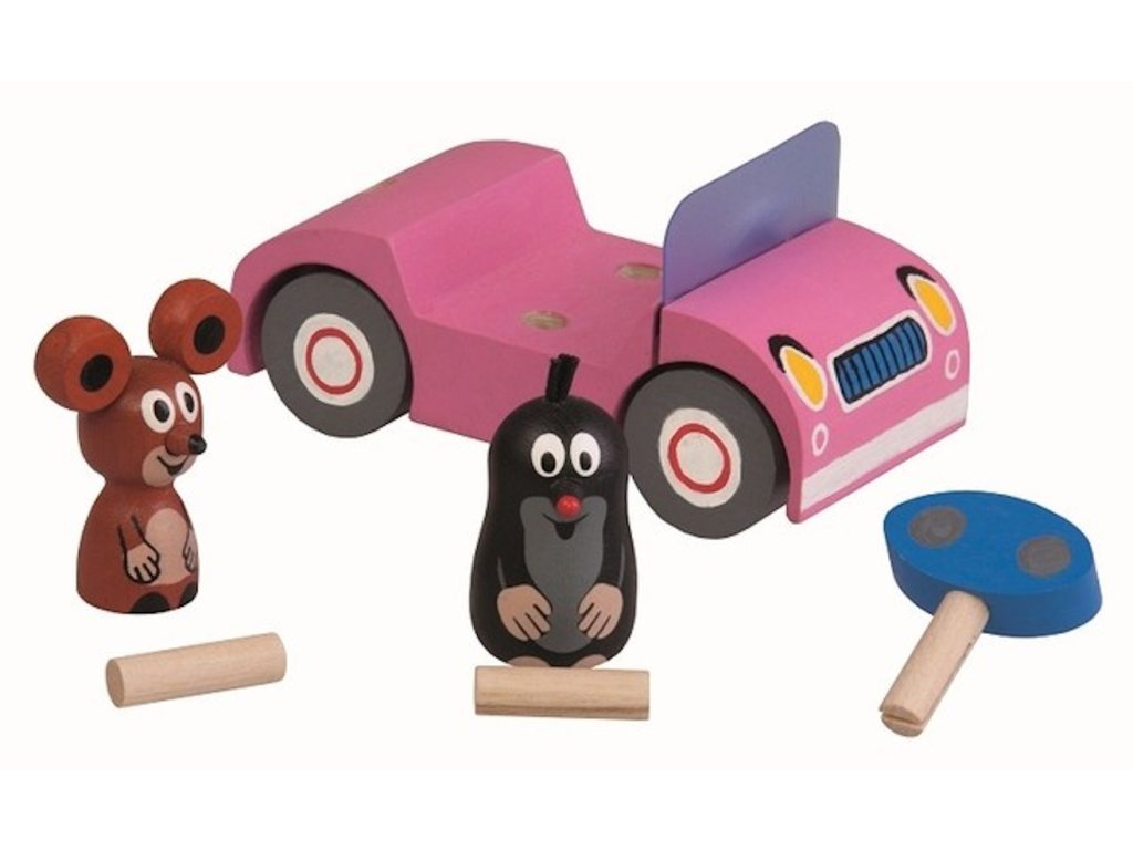 Autíčko je vyrobeno z odolného materiálu - dřeva, baleno v papírové krabičce. Skvělý dárek pro malé milovníky Krtka, kteří si rádi hrají na cestování.
