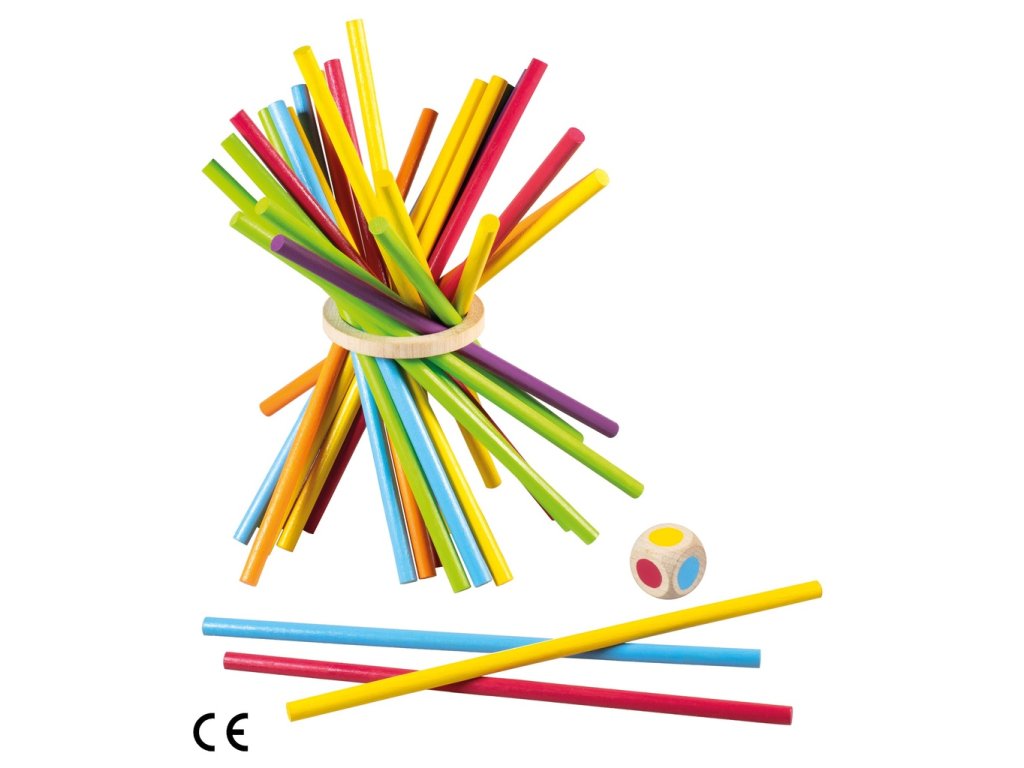 Sada obsahuje 30 barevných tyček, 1 kostku a 1 dřevěný kroužek. Skvělá hra pro 2 a více hráčů, vhodná pro rodinné večery, družiny nebo školní aktivity.