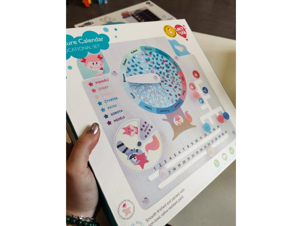 Kalendář přírody je dřevěná vzdělávací hračka, která seznamuje dítě ve věku od 3 let se zajímavostmi ročních období. Uprostřed dřevěné hrací desky je listnatý ovocný strom s pohyblivým ukazatelem, zobrazující 12 kalendářních měsíců.