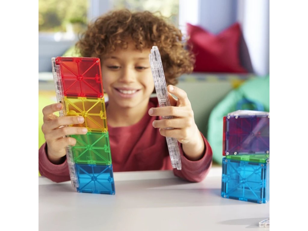 Stavebnice Magna-tiles je vyvíjena a doporučena pedagogy, podporuje zábavné a interaktivní učení. Rodiče mohou bez obav nechat děti se stavebnicí samotné – výrobce velmi dbá na kvalitu, bezpečnost a perfektní řemeslné zpracování. Magnetické stavebnice jsou oblíbeným dárkem, ke kterému nepotřebujete obrazovku, a přesto si užijete hodiny smysluplné zábavy. Děti i rodiče je prostě milují!