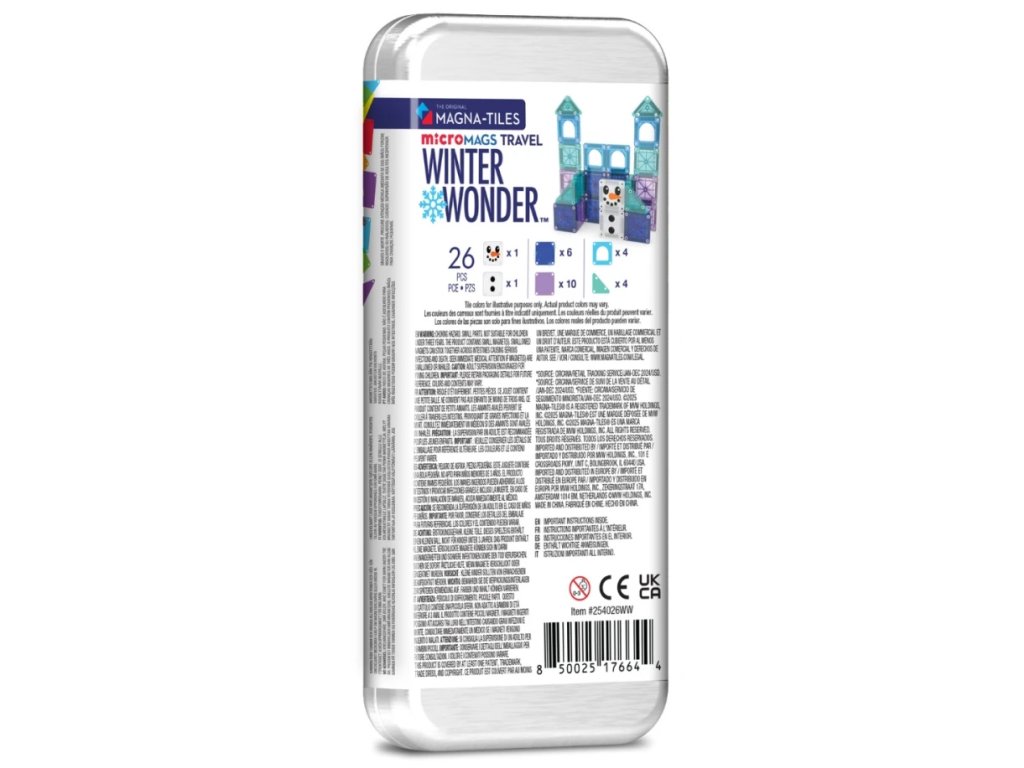 Magnetická stavebnice microMAGS Travel Set je ideální společník na cesty. Přináší praktičnost a zábavu v jednom kompaktním balení. Tento set obsahuje 26 magnetických dílků, kde všechny díly jsou o 75 % menší než tradiční MAGNA-TILES, což umožňuje ještě detailnější stavby malých stavitelů. Díky kovovému obalu dílky pohodlně uklidíte a je tak ideálním společníkem i na cesty. Magnety microMAGS jsou plně kompatibilní se všemi ostatními stavebnicemi MAGNA-TILES, což z nich činí skvělý doplněk ke stávajícím sadám.