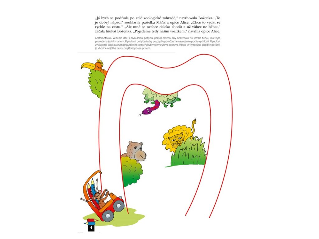 Publikace je určena dětem k prověření jejich znalostí, schopností a dovedností před nástupem do školy, nejvhodnější je pro věk 3 až 5 roků dítěte. Knížka se zaměřuje na oblast grafomotoriky, zrakového vnímání, řeči, sluchového vnímání, prostorové a pravo-levé orientace, vnímání času a základních matematických představ. Každá strana obsahuje motivační příběh pro děti a vysvětlení činnosti a jejího cíle pro dospělé.