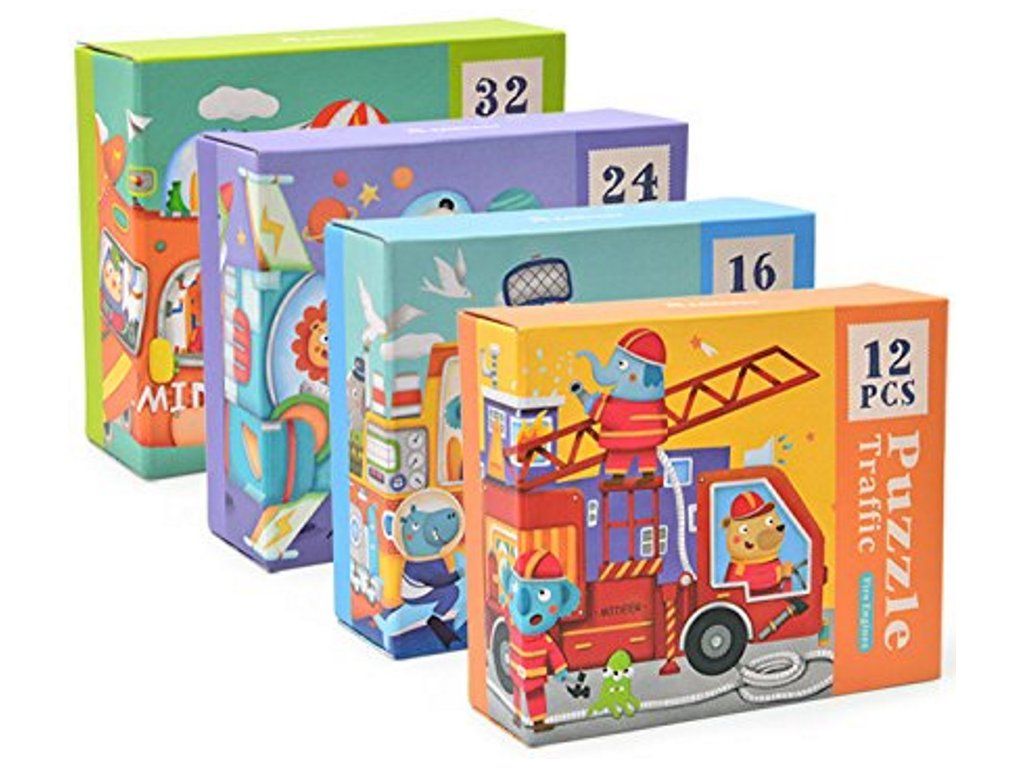 - 4 samostatné krabičky s různým počtem puzzle (12, 16, 24 a 32 kusů)