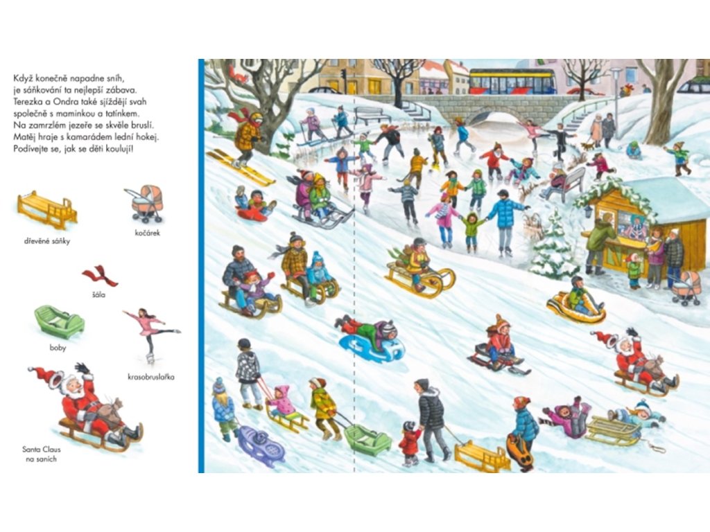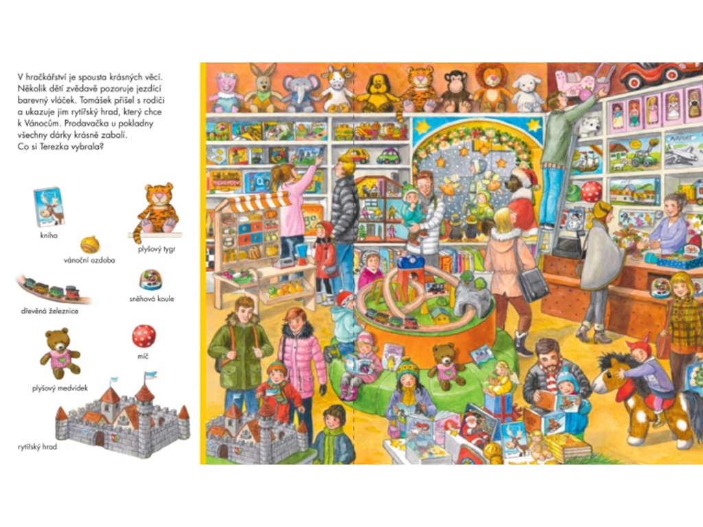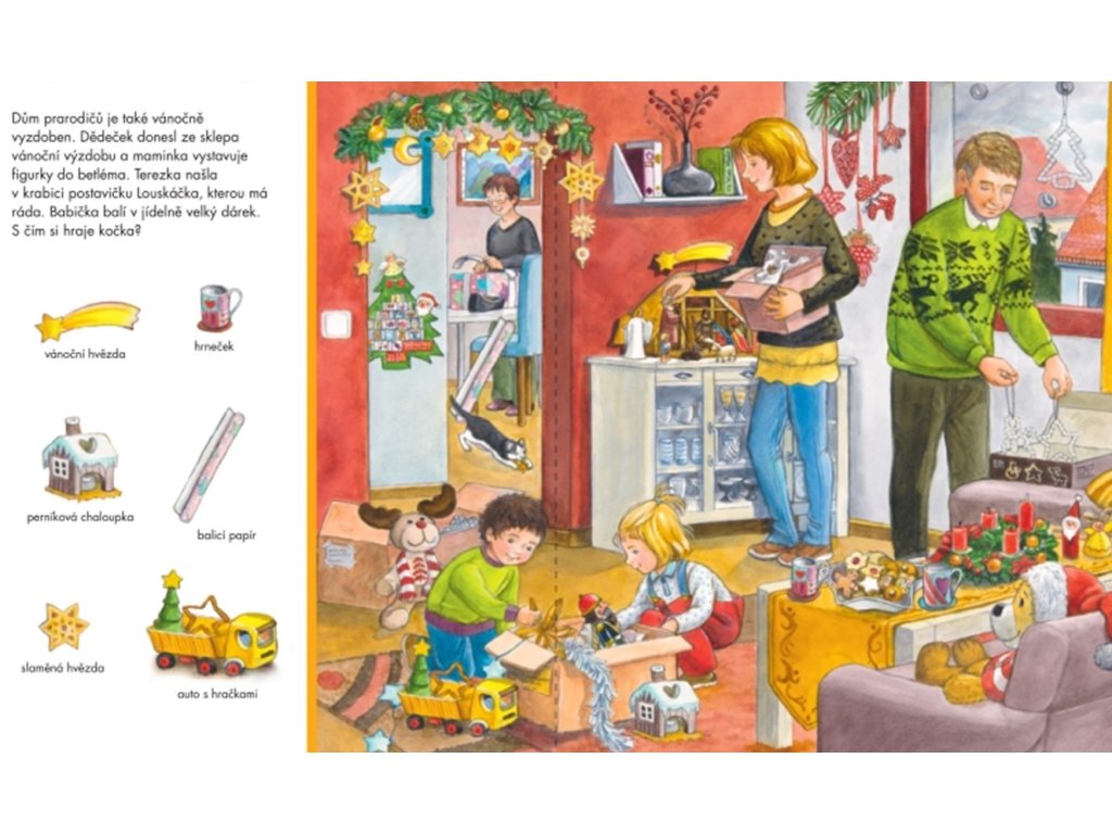 Díky veselým ilustracím a hravému zadání si děti procvičí trpělivost i schopnost všímat si detailů. Kniha je ideální pro společné čtení i samostatné prohlížení během adventního období.