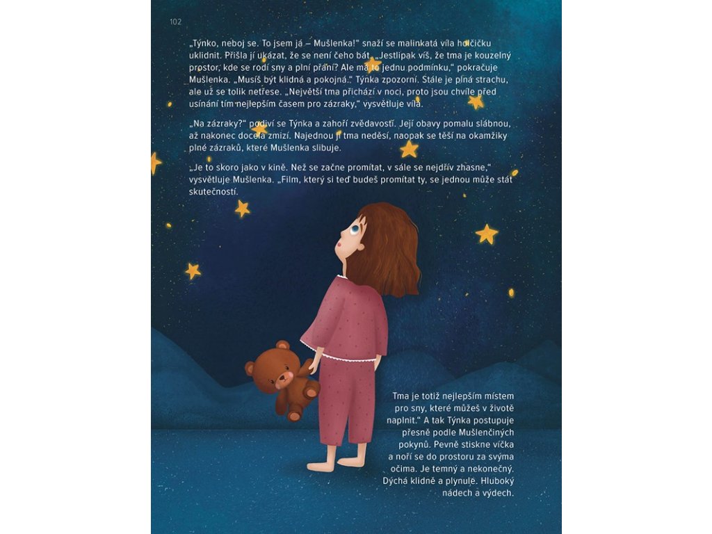 Každý z nás má ve své duši kouzelnou perlu – jen někdy bývá schovaná pod nánosem složitých emocí. A od toho je tady víla Mušlenka, která její světlo umí najít u každého člověka. Třeba u Honzíka, kterému se děti ve škole posmívají, u Janičky, která si nedělá úkoly a pořád jen slyší, že z ní nic nebude, u Standy, který všechno vidí černě a nedokáže se radovat, nebo u Terezky, která žárlí na svého nevlastního bratra a další děti. Tato laskavá vyprávění vyléčí všechna smutná srdce a pofoukají každou bolístku. Tato knížka je inspirována učením Virginie Satirové - světové rodinné terapeutky. Pohádky, které v ní najdete, jsou určeny dětem předškolního a mladšího školního věku. Knížka nabízí možnost sdílení zážitků všedního dne, svěřování se se svými pocity, problémy, trápeními, proto je vhodná zejména pro společné čtení s rodiči. Učí děti, jak rozpoznávat a zvládat svoje emoce a posiluje jejich vědomí vlastní hodnoty. Romana Suchá pracuje v Psychiatrické nemocnici Kroměříž jako vedoucí klinická psycholožka a psychoterapeutka. Ve svém volném čase se věnuje tvorbě pro děti – psaní knížek a cvičebnic, ale i podkladů pro didaktické hry a mobilní aplikace. Ke svému koníčku se dostala v době, kdy byla se svými dětmi na rodičovské dovolené a skládala pro ně různé básničky i pohádkové příběhy. Svou tvorbu se snaží obohatit o vlastní psychologickou zkušenost a dát jí nový rozměr.