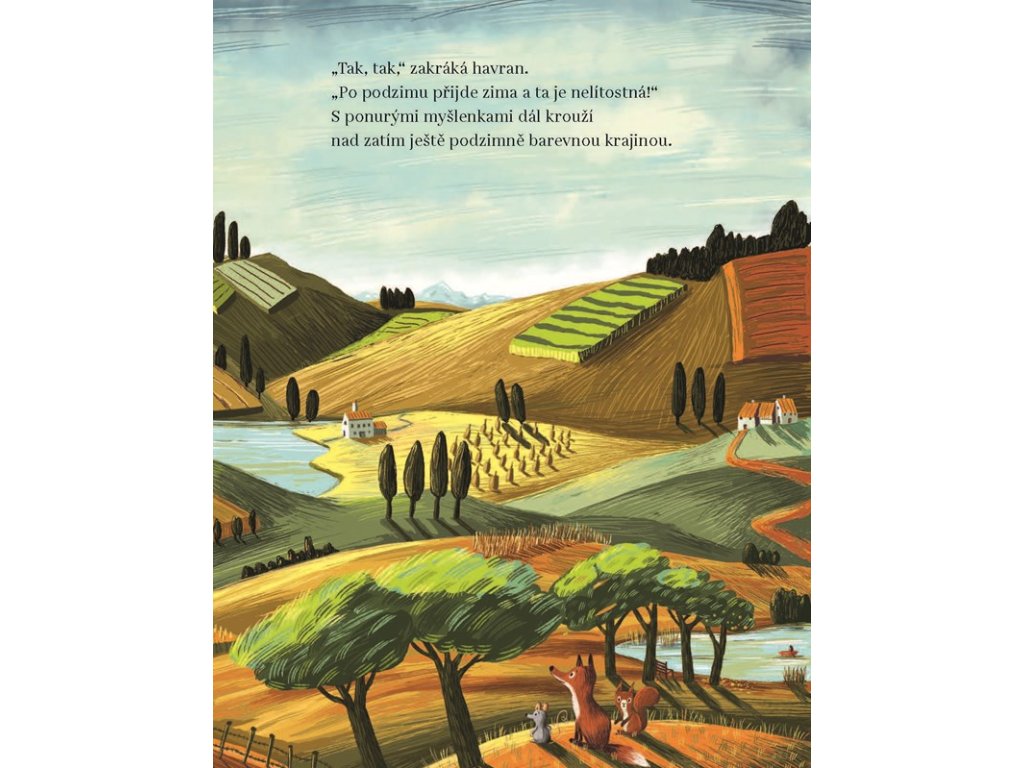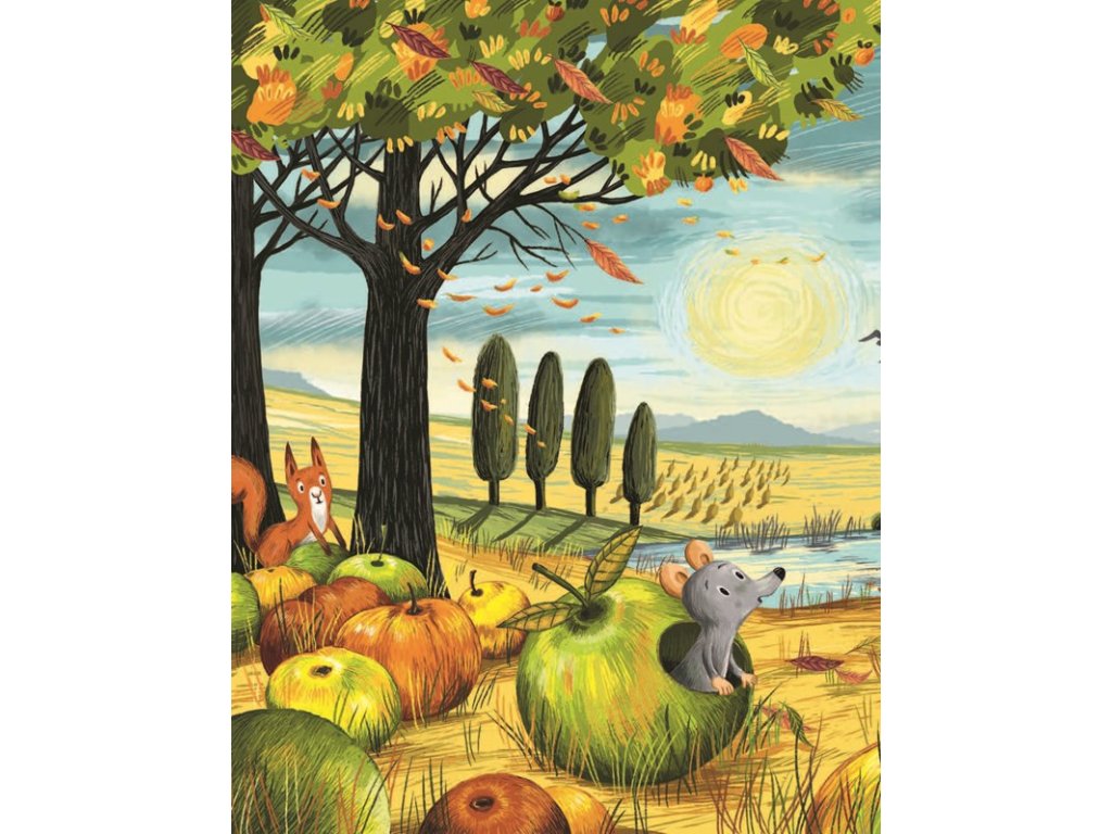 Kniha Podzim v lese zve malé čtenáře do světa, kde se příroda zbarví do odstínů žluté, oranžové a červené. Liška, myš a havran si dělají starosti s přicházející zimou, zatímco veselá veverka se ničeho nebojí a užívá si každý okamžik.