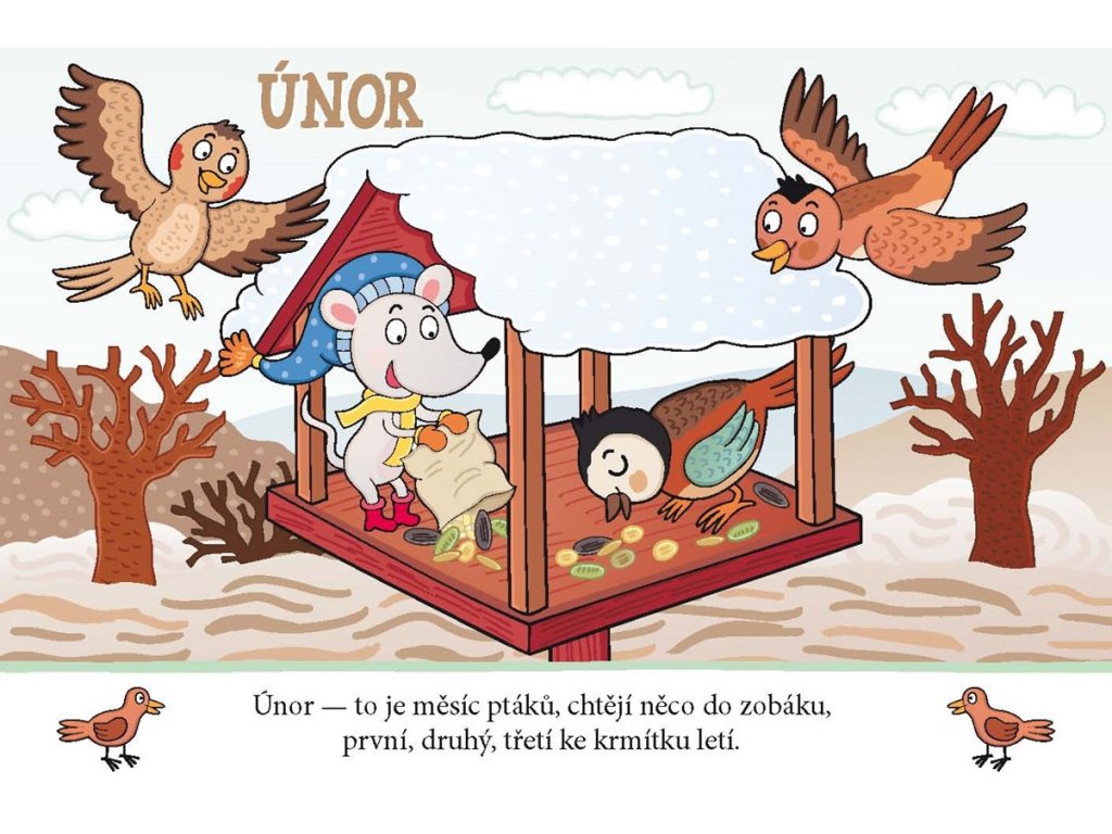 MĚSÍCE – to znamená celý rok od ledna do prosince. Autorka veršů vytvořila vtipné rýmy, které každý měsíc neomylně charakterizují, a ilustrátorka je podtrhla svými obrázky. Leporelo je určeno pro malé děti a také tentokrát je zábava současně školou a poučení hrou.